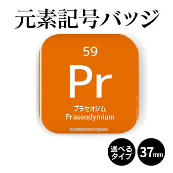元素記号バッジ(四角37mm) プラセオジム 缶バッジ マグネット 周期表 記念品 プレゼント ノベルティ/おもしろ