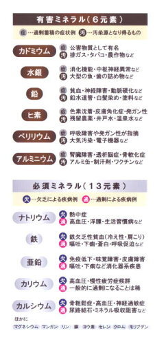 さらに、有害金属の汚染源、解毒に役立つ栄養素、必須ミネラル等の役割を含め全26種類のミネラルについて解説する「ミネラルガイド」もついてきます。